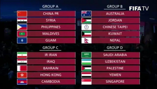 واوقعت القرعة منتخب النشامى مع استراليا والكويت والصين تايبيه (تايوان) ونيبال.