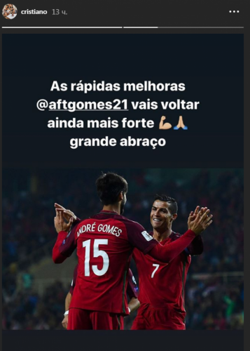 وجاءت رسالة نجم يوفنتوس الإيطالي من خلال حسابه على "إنستغرام" على خاصية "الستوري"، حيث نشر صورة تجمعه مع مواطنه غوميز وقال فيها : "سوف نصلي من أجل الشفاء السريع ، أنا متأكد بأن غوميز سيعود أقوى".