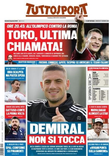 فيما حملت صحيفة "توتو سبورت" عنوان: "ديميرال لا يمكن المساس به، نصف أوروبا يراقبون المدافع التركي الشاب، لكن يوفنتوس قرر رفض جميع العروض".