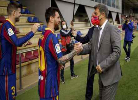 ويواجه لابورتا في تجديد عقد ميسي حالياً، عقبتين رئيسيتين الأولى ممثلة في الحد الأقصى للرواتب الذي تفرضه رابطة الليجا، وما قالته الهيئة التي يرأسها خافيير تيباس لنادي برشلونة هو أنه ملزم بالامتثال للوائح، وأن برشلونة أو ميسي ليسا فوقها، ولذا سيتعين على إدارة برشلونة مناشدة ميسي لتلقي ضربة مالية إذا قام بإعادة التوقيع.