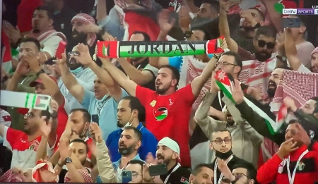 وقال مراسل قنوات "بين سبورت" من قلب استاد المدينة التعليمية، "إن جمهور النشامى نوّر الدوحة ونوّر المباراة"، مضيفا: لقد استمتعت كثيرا بأداء الجماهير الأردنية، التي حولت المباراة إلى عرس جميل سمعنا خلاله الأهازيج والأغاني التراثية الأردنية الجميلة.