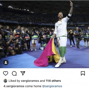 وعلى موقع التواصل إنستجرام، نشر حساب جماهيري يحمل اسم راموس، صورة للاعب بقميص الملكي، أرفقها بكلمات "عد إلى بيتك"، في إشارة إلى الفريق الإسباني.