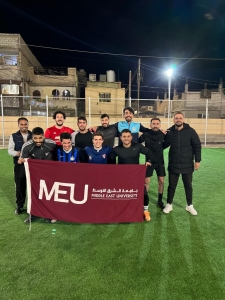 تأهل فريق جامعة الشرق الأوسط إلى نصف نهائي بطولة الشباب الرمضانية لخماسيات كرة القدم 2022 التي تنظمها وزارة الشباب، بعد فوزه على فريق أم الوليد بفارق 5 أهداف، لتكون نتيجة المبارة 7-2.