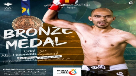 لاعب المنتخب الوطني للكيك بوكسينج عدي أبو حصوة يظفر ببرونزية دورة ألعاب التضامن الإسلامي
