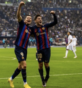 وسجل برشلونة هدفه الأول في الدقيقة 33 من عمر الشوط الاول عن طريق لاعبه جافي بتسديدة من داخل منطقة الجزاء، فيما عزز اللاعب ليفاندوفسكي النتيجة للفريق الكاتالوني (د 45) مستغلا تمريرة جافي داخل منطقة الجزاء