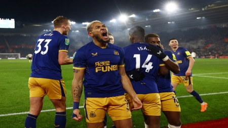 وضع فريق نيوكاسل يونايتد قدمًا في نهائي كأس الرابطة الإنجليزية لكرة القدم، عقب فوزه على مضيفه ساوثمبتون 1-0 الثلاثاء في ذهاب الدور نصف النهائي