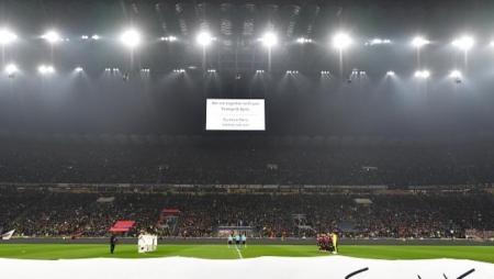 وقبل انطلاق مباريات الثلاثاء، بين ميلان وتوتنهام في ملعب سان سيرو، وباريس سان جيرمان وبايرن ميونخ في "بارك دي برانس"، وقف اللاعبون دقيقة صمت ترحماً على الضحايا