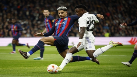 دعم كارلو أنشيلوتي مدرّب ريال مدريد جناحه فينيسيوس جونيور في معركته المرتقبة لفك قيود مدافع برشلونة رونالدو أراوخو، عشية مواجهة الكلاسيكو المنتظرة في الدوري الإسباني لكرة القدم
