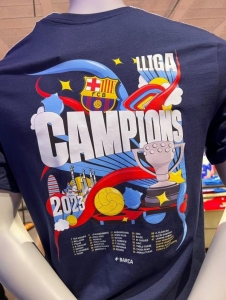وبعد ساعات من التتويج بشكل رسمي، صمَّم برشلونة قمصانا خاصة للاحتفال باللقب، حيث ارتداها اللاعبون خلال الموكب الذي جاب شوارع المدينة للاحتفال مع الجماهير