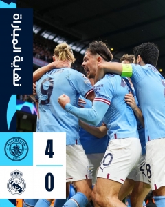 الرأي نيوز - تأهل مانشستر سيتي الإنجليزي إلى نهائي دوري أبطال أوروبا بعد الفوز على ريال مدريد الإسباني بنتيجة 4-0، في المباراة التي أقيمت على ملعب "الاتحاد" في إياب دور نصف النهائي.