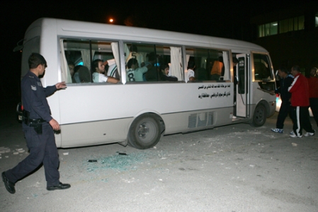 فقد تعرضت الحافلة الى تكسير الزجاج، مثلما تعرض عدد من اللاعبين للجروح والاصابات.