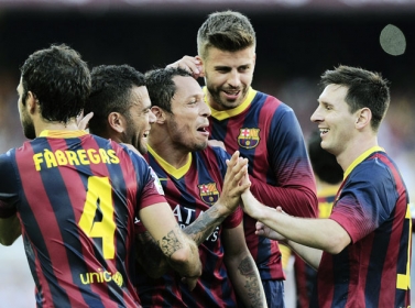 على ملعب "كامب نو"، احتاج المضيف الى دقيقتين ونصف فقط ليهز شباك ليفانتي عبر التشيلي اليكسيس سانشيس بعد عرضية داخل لمنطقة من سيسك فابريغاس، ثم استهل الارجنتيني ليونيل ميسي افضل لاعب في العالم في الاعوام الاربعة الماضية مسيرته التهديفية بعد تمريرة من بيدرو رودريغيز(12).
