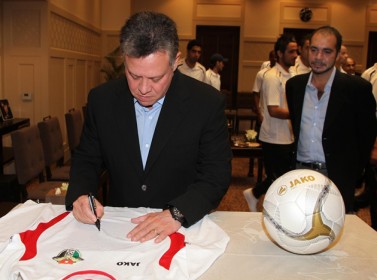 ووجه جلالة الملك شكره وتقديره الى كل ابناء الوطن داخل وخارج الوطن لمشاركتهم الهامة بدعم النشامى واتحاد كرة القدم مثلما وجه شكره وتقديره ايضا للدعم الذي قدمه الاشقاء بدولة الامارات العربية وخص بالذكر سمو الشيخ محمد بن راشد وسمو الشيخ محمد بن زايد مؤكدا جلالته ان هذه المشاركة سوف ترفع من معنويات النشامى.