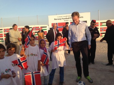وأكد وزير الخارجية النرويجي أن ملاعب كرة القدم في الزعتري هما اثنين من أصل ثمانية ملاعب كرة قدم مقدمة من حكومة النرويج، كوسيلة دعم في جميع أنحاء شمال الأردن، حيث تتم استضافة غالبية اللاجئين السوريين هناك.