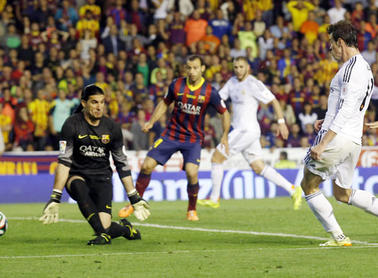 وانطلق جناح منتخب ويلز الذي انضم الى ريال مدريد في صفقة قياسية عالمية قبل انطلاق الموسم الحالي من جهة اليسار ليتوغل في منطقة الجزاء في الدقيقة 85 من المباراة التي اقيمت على ملعب ميستايا التابع لنادي فالنسيا وسدد الكرة من بين ساقي خوسيه مانويل بينتو حارس برشلونة.