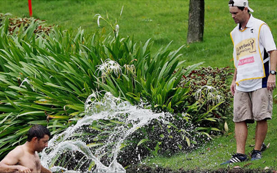 اضطر لاعب الغولف بابلو لارازابال إلى القفز في أحد مستنقعات المياه، خلال مباراة له في دورة الألعاب الماليزية المفتوحة، الجمعة، بعد هجوم لسرب من الدبابير السامة.