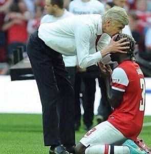 لقطة رائعة .. فينغر يقبل رأس سانيا و هو يشكر الله
