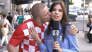 انتشر على مواقع التواصل الاجتماعي فيديو قصير تم تصنيفه على أنه الأشهر في مونديال السامبا حتى الآن، ويظهر المقطع القصير مشجع كرواتي يُقبّل مذيعة برازيلية على الهواء مباشرة.