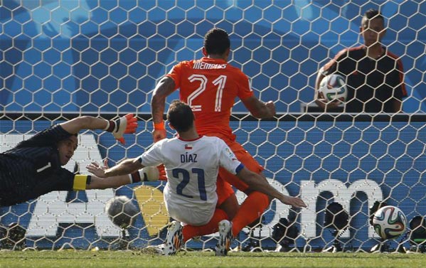 وأحرز يوري فير الهدف الأول لصالح هولندا في الدقيقة 77، عبر رأسية موجهة لتسكن الزاوية اليسرى للشباك التشيلية.