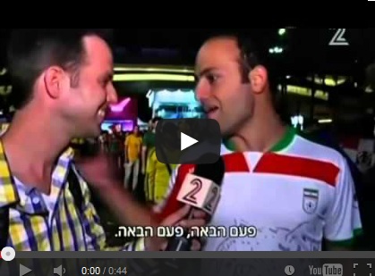 - كشف شريط خاص بثته قناة إسرائيلية عن مدى حب الجماهير الإيرانية المشاركة في مونديال كأس العالم بالبرازيل، لإسرائيل.