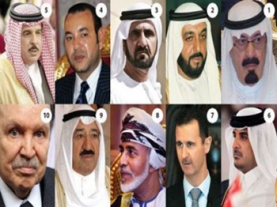 تتضمن قائمة أغنى 15 حاكماً حول العالم 10 حكام عرب، باستثناء الحكام السابقين الذين عصفت بهم رياح "الربيع العربي”