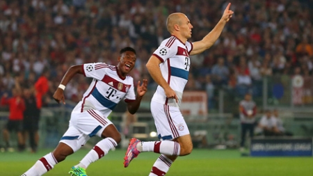 بدأ اللقاء سريعا ً وجميلا ً بين الفريقين باحثين عن التسجل المبكر خلال الدقائق الأولى. وافتتح روبن التسجي بالدقيقة 9 بعدما تلاعب بدفاع روما وسدد كرة ملتفة بالزاوية اليمنى للحارس دي سانتوس معلنا ً اولى أهداف البافاري بالمباراة.