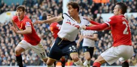 وتعادل أيضا مانشستر يونايتد بدون أهداف أمام مضيفه توتنهام وذلك في المباراة التي اقيمت عصر الاحد ضمن مباريات الدوري الانجليزي الممتاز لكرة القدم، والتي لعبت على ملعب الوايت هارت لين معقل السبيرز.