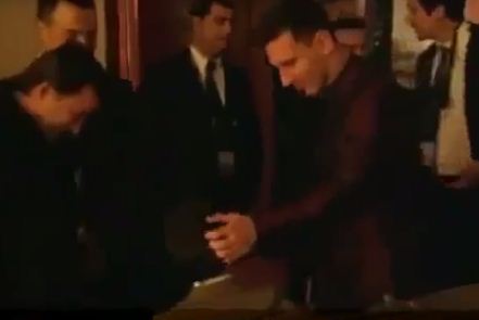 وكان اللاعبون يستريحون في كواليس مسرح توزيع الجوائز عندما شاهد نجل رونالدو ميسي أثناء دخوله، ليتوجه له مباشرة من أجل تحيته، ليقابله النجم الأرجنتيني بترحيب شديد، ويملس رأسه ويتحدث معه قائلاً: 'كيف حالك.. هل أنت بخير؟'.