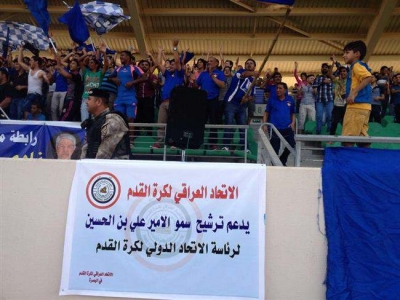 وخلال الحملة في الملاعب العراقية عبر اركان كرة القدم العراقيه عن تقديرهم ودعمهم لترشيح الامير علي بن الحسين لرئاسة الاتحاد الدولي واشادوا بموقف الاتحاد العراقي اتجاه شخصية عربيه رياضيه قياديه تستحق الدعم للوصول الى قمة المسؤولية عن اهم رياضة على وجه الكرة الارضية.