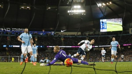 واستفاد توتنهام من خسارة ليستر سيتي (المتصدر) 1 / 2 أمام مضيفه أرسنال في وقت سابق اليوم، ليقلص الفارق معه إلى نقطتين فقط، في ظل سعي الفريق الأبيض لاستعادة اللقب الغائب عنه منذ موسم 1960 - .1961 في المقابل، واصل مانشستر سيتي، الذي تلقى خسارته السابعة في المسابقة هذا الموسم، والثانية على التوالي، ابتعاده عن سباق المنافسة على الصدارة، بعدما تجمد رصيده عند 47 نقطة في المركز الرابع. وعجز الفريقان عن هز الشباك خلال الشوط الأول الذي انتهى بالتعادل السلبي، قبل أن يبادر هاري كين بالتسجيل لتوتنهام في الدقيقة 54 من ركلة جزاء مثيرة للجدل بعدما لمست الكرة يد رحيم ستيرلينج لاعب سيتي داخل منطقة جزائه. وأدرك البديل كيليشي إيهياناتشو التعادل لسيتي في الدقيقة 74، قبل أن يحرز كريستيان إيركسن الهدف الثاني لتوتنهام قبل النهاية بأربع دقائق، مسجلا هدفه الخامس في المسابقة هذا الموسم وواصل توتنهام، الذي حقق انتصاره الأول على سيتي في ملعبه (الاتحاد) منذ موسم 2009 - 2010 تفوقه على الفريق السماوي هذا الموسم، بعدما تغلب عليه 4 / 1 بجولة الذهاب في شهر أيلول/سبتمبر الماضي.
