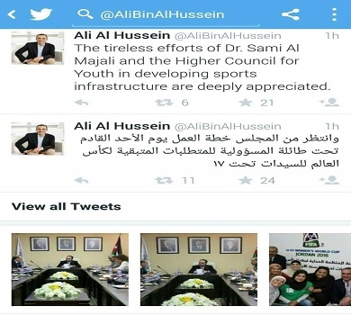 وجاء في تغريدة للامير علي على 'توتير' :' انتظر من المجلس الاعلى للشباب خطة العمل على مكتبي يوم الاحد القادم تحت طائلة المسؤولية'.