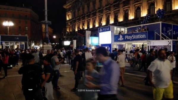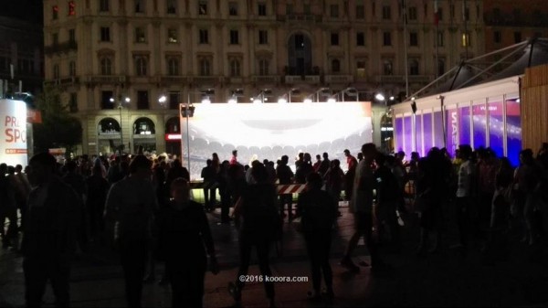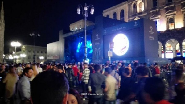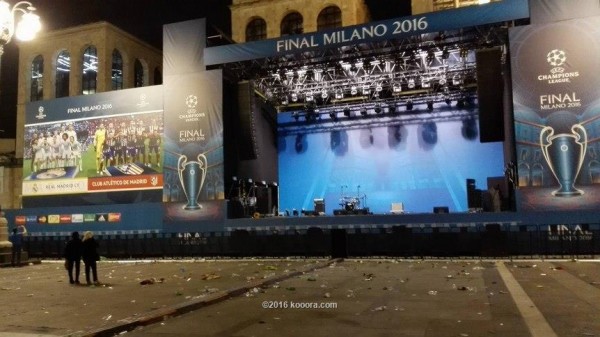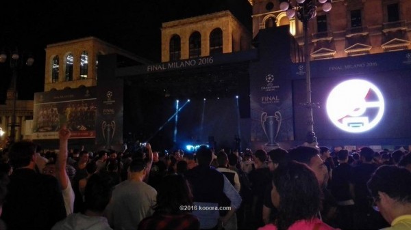 ووضع الاتحاد الأوروبي "اليويفا" مسرحا ضخما في قلب الميدان احتلته بعض الفرق الموسيقية وتجاوب معها الجميع مما أضفى جوا ساحرا في المدينة الإيطالية.