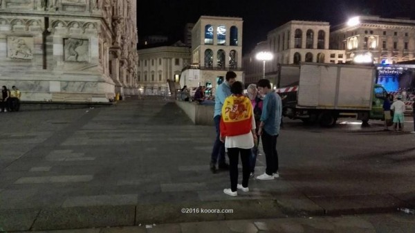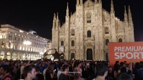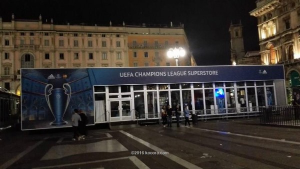 ميدان "الدومو" الذي يعد أشهر معالم المدينة امتلأ بصور الفريقين وشعار البطولة مما جعله قبلة جماهير الفريقين.