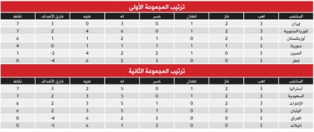 وتلعب كوريا في طهران على صدارة المجموعة إذ يتقاسم الفريقان الصدارة ولكل منهما سبع نقاط من ثلاث مباريات.