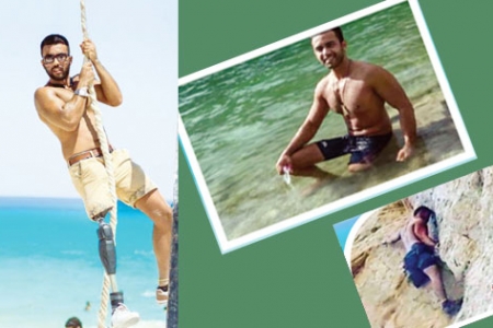 استطاع شاب مصري بساق واحدة قطع مسافة 20 كيلو مترا سباحة بين مدينة طابا المصرية والعقبة الاردنية .