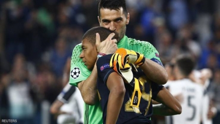 وفي الدقيقة 69 من مواجهة إياب نصف النهائي تمكن الفرنسي مبابي (18 عاما) من التسجيل في مرمى العملاق بوفون (39)، الذي لم يستطع إلا أن يقبّل رأس النجم الصاعد كعلامة إعجاب به.