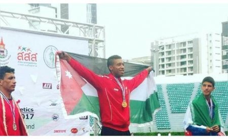 - توج لاعب المنتخب الوطني لالعاب القوى شريف العطاونة بالميدالية الذهبية، في منافسات بطولة آسيا للناشئين والناشئات والتي تجري أحداثها في مدينة بانكوك التايلاندية وتستمر حتى يوم غد الثلاثاء.