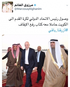 وأعلن الرئيس الغانم أنه وجه الدعوة لعقد جلسة خاصة للمجلس الأحد المقبل، لمناقشة والتصويت على قانون الرياضة الجديد «المتوافق مع معايير واشتراطات الاتحاد الدولي لكرة القدم (فيفا)»، معرباً عن تفاؤله بأن «يساهم القانون في رفع الايقاف الرياضي الظالم».