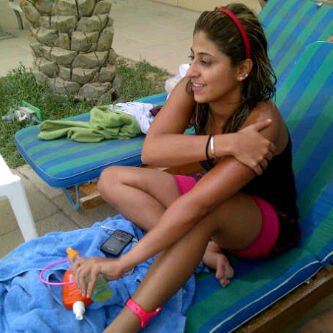 أنه متزوج من أخرى، حيث نشرت صورتها على تويتر وهي ترتدي المايوه وتسبح في حمام السباحة.