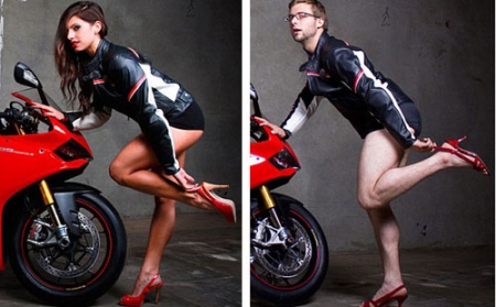 أقدمت شركة أمريكية لبيع الدراجات البخارية على استخدام رجال للترويج منتجاتها يرتدين ملابس نسائية ويقلدن حركات فتيات الإعلانات نفسها.