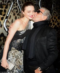والتقطت ميراندا الصور برفقة المصمم روبيرتو كافالي ، وتلقّت منه الكثير من القبلات.
