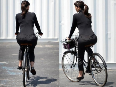كيم-33 عاماً- كانت تقود دراجة هوائية، وترتدي بنطلوناً أسود، وبادي من نفس اللون، وربطت شعرها للخلف بشكل أضفى عليها مزيد من الحيوية والجاذبية، إلا أنها فجأة اختل توازنها بسبب قوامها الممتلئ وسقطت أرضاً أمام الكاميرات.