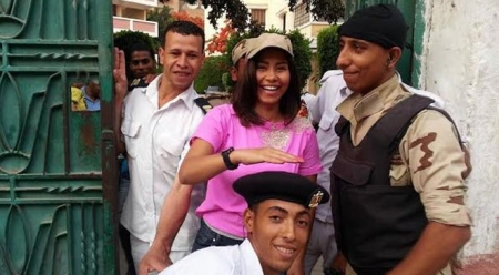 نشرت الفنانة المصرية شيرين عبد الوهاب مجموعة من الصور التي التقطتها مع عناصر الشرطة والجيش المسؤولين عن تأمين لجنتها الانتخابية على صفحتها عبر موقع فيس بوك.