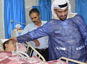 وعبر حسابه على Twitter، نشر الجسمي صورةً له داخل إحدى المستشفيات وصورة أخرى خلال جولته في غزة، وكتب معلّقاً: "لا يمكن وصف ما رأته العين من دمار وعدوان تدمع له العين والقلب في غزة الصامدة خلال زيارتي اليوم".