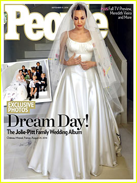 شكل زفاف النجمين الأميركيين، أنجلينا جولي وبراد بيت، بعد ارتباط دام 9 سنوات، حدثاً بحد ذاته. وعم الخبر صفحات الجرائد  والمجلات والمواقع، إلا أن قلة قليلة شاهدت صور الزفاف، لاسيما فستان العروس، وقد حصلت مجلة "بيبول" و"هلو" (People- Hello) على صور حصرية من الزفاف، تنشر في عددها الصادر غداً الأربعاء. إلا أن اللافت في الموضوع أن فستان أنجلينا جاء بسيطاً جداً، لاسيما من الأمام، حيث لم يزين الصدر بأي زخرفات أو أحجار أو ما شابه. أما الطرحة فأتت طويلة ومتناغمة ببساطتها مع الفستان الأبيض الناصع المصنوع من قماش "الساتان". أما المميز في هذا الفستان فهو أن ظهره حمل رسومات أطفال أنجلينا وبراد الستة، على الرغم من أن كبير الخياطين في "Versace"، Luigi Massi، هو من صممه، فهو أحد الأصدقاء المقربين لجولي. وفي هذا السياق، أكدت الأخيرة أنها لم تكن لتتصور أي شخص آخر يصمم لها الفستان، لاسيما أنها تدرك كم يحب أطفالها ويهتم بهم، وبالتالي كان من اللطيف إشراكهم في فستان عرسها.5405aa35a5bdc