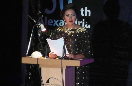 فستان لقاء الخميسي العاري يثير استياء مهرجان الإسكندرية