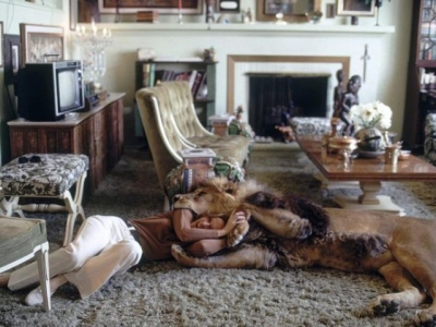 الصور والتي نشرتها الصحيفة، يظهر فيها الأسد كأنه حيوان أليف من حيوانات البيوت كالكلاب والقطط، يتجول ويستلقي في ارجاء البيت، ويستلقي بجانب الممثلة ويداعب أفراد اسرتها.