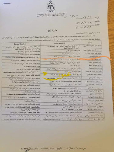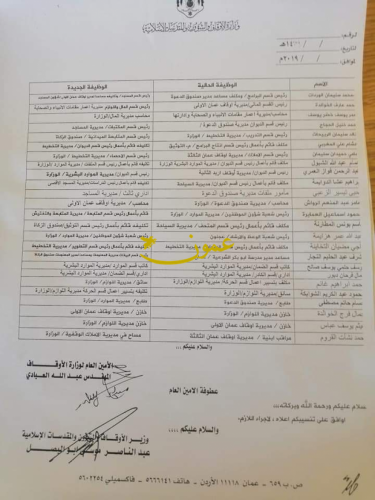 قرر وزير الاوقاف والشؤون والمقدسات الاسلامية عبد الناصر ابو البصل وبناء على تنسيب الامين العام اجراء تنقلات واسعة بين كبار الموظفين .