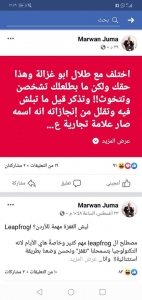 واستخدم جمعة في منشورة عبارة غير موفقة لاقت ردود الافعال التي خلفتها حين قال :'اختلف مع طلال ابو غزاله وهذا حقك لاكن ما بطلعلك تشخصن الامور وتتخوث !! وتذكر قبل ما تبلش فيه وتقلل من إنجازاته انه اسمه صار علامة تجارية عالمية لما حضرتك كنت تعملها تحتك !!'