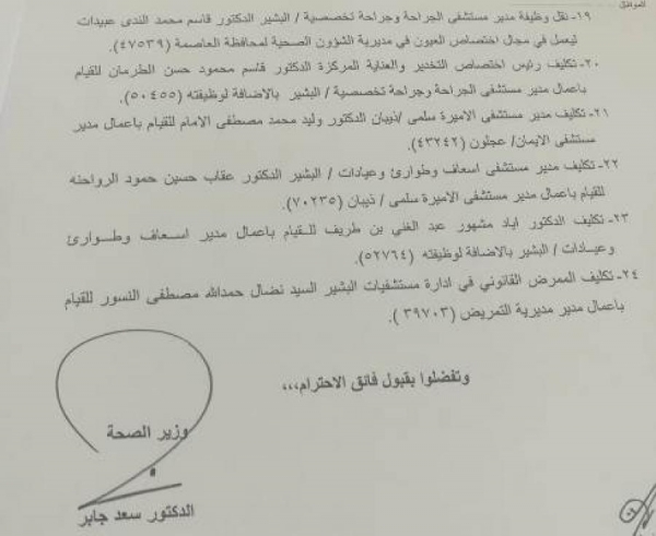 قرر وزير الصحة الدكتور سعد جابر إجراء مجموعة واسعة من التنقلات في وزارة الصحة، و تالياً الأسماء: